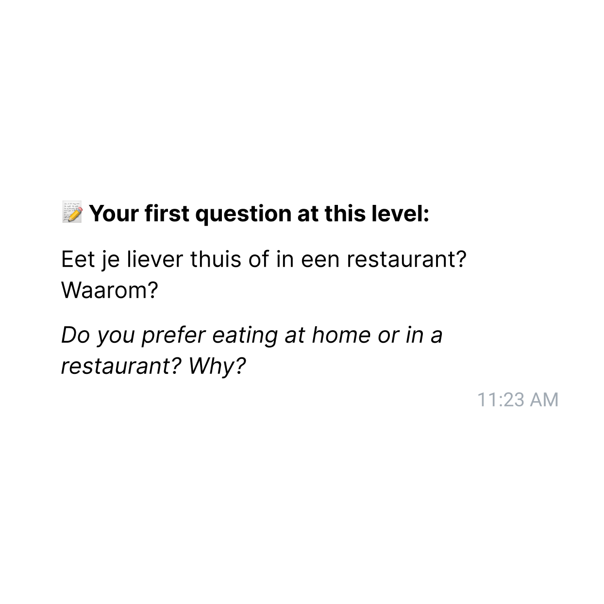 Open the Dutch Coach bot on Telegram and start chatting. No setup, no account.Start for free